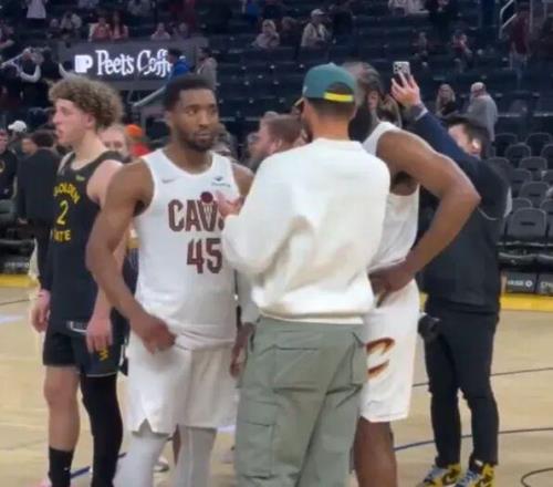 賽后,庫里與米切爾哈登相聊正歡