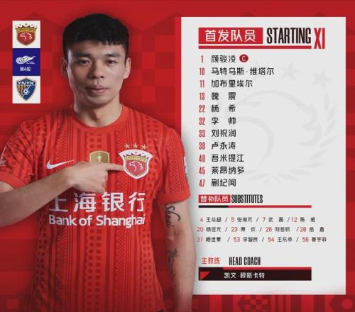 首發(fā):1-顏駿凌、10-維塔爾、11-加布里埃爾、13-魏震、22-楊希、32-李帥、33-劉祝潤、38-盧永濤、40-吾米提江、45-萊昂納多、47-蒯紀聞