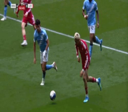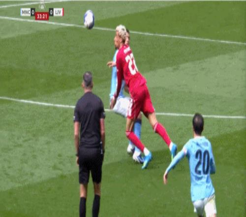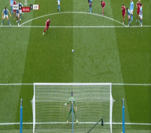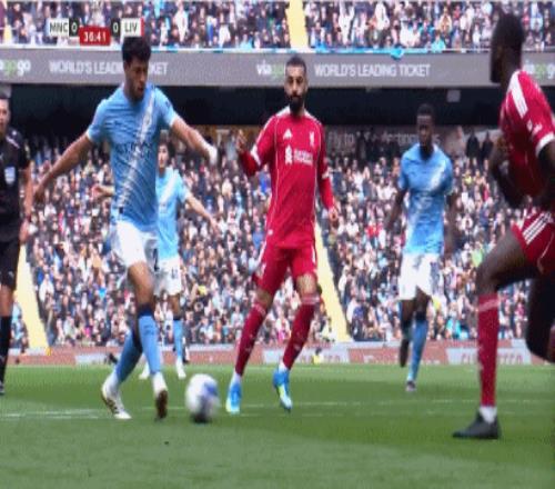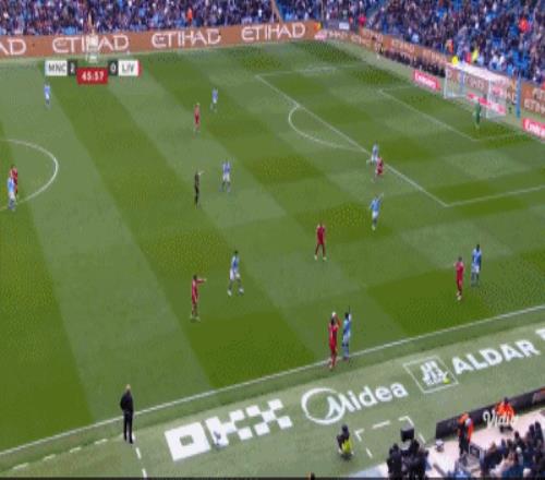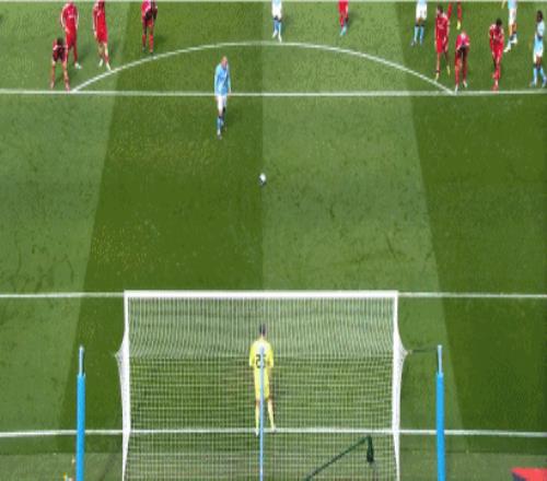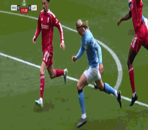 第38分鐘,范戴克踢倒奧賴(lài)?yán)忘c(diǎn),哈蘭德點(diǎn)球破門(mén),曼城1-0利物浦!