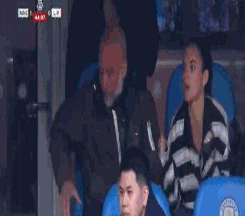 因停賽無(wú)法在場(chǎng)邊指揮,瓜迪奧拉和其女兒在看臺(tái)觀戰(zhàn)