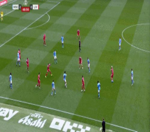 第49分鐘,謝爾基送直塞,塞門(mén)約挑射破門(mén),曼城3-0領(lǐng)先利物浦!
