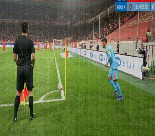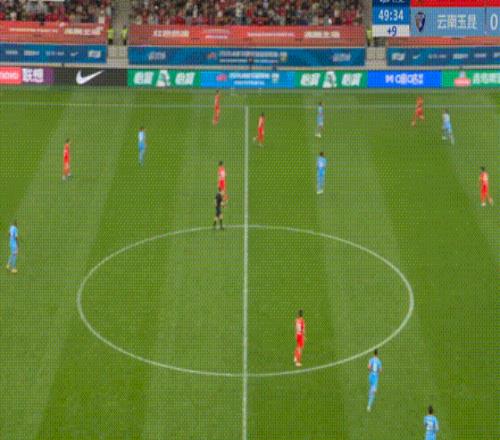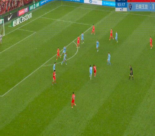第14分鐘,楊希頭球傳中,劉祝潤鏟射到門前,萊昂納多跟進(jìn)破門,這球最終判定為越位。