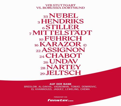 北京時(shí)間4月5日0:30,德甲第28輪繼續(xù)進(jìn)行,多特蒙德做客梅賽德斯-奔馳競(jìng)技場(chǎng)挑戰(zhàn)斯圖加特,本場(chǎng)主裁判為羅伯特-施羅德,賽前雙方首發(fā)出爐。