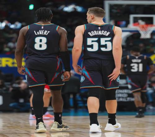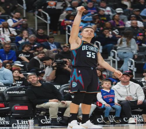 2024-25賽季,活塞開始崛起,常規(guī)賽44勝38負比前一年多贏30場?;钊詵|部第六的身份打進季后賽,最終被尼克斯4-2淘汰。2025年夏天,活塞想跟馬利克-比斯利續(xù)約,但他深陷“賭球風波”,活塞立刻以3年4800萬美元簽下鄧肯-羅賓遜。