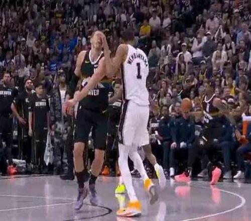 文班亞馬一個(gè)大力金剛掌直接將約基奇拍出血