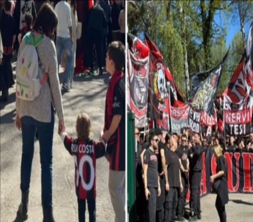 4000名或許更多戴著紅黑圍巾、身著萊奧、魯伊·科斯塔、馬爾蒂尼和莫德里奇球衣的球迷們涌向米蘭基地。南看臺(tái)揮舞著旗幟,擂響戰(zhàn)鼓。在對(duì)陣那不勒斯賽前兩天,米蘭球迷們涌向米蘭內(nèi)洛觀看球隊(duì)訓(xùn)練。這場(chǎng)景宛如集訓(xùn)首日,氣溫雖然還沒(méi)到7月那種程度,但也足以向春天致敬。畫面令人震撼,米蘭顯然備受鼓舞:以隊(duì)長(zhǎng)邁尼昂為首,球員們走向米蘭內(nèi)洛入口的小徑與看臺(tái)球迷會(huì)面。歌聲、掌聲交織,仿佛回到了90年代,或者是2022年皮奧利奪冠時(shí)的盛況。