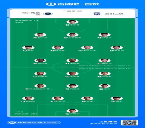 新鵬城vs三鎮(zhèn)首發(fā):4外援PK4外援!戴偉浚、姜至鵬先發(fā),紹爾出戰(zhàn)