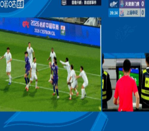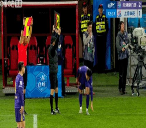 第13分鐘,津門虎球員投訴對方禁區(qū)內(nèi)手球,主裁判未予理睬