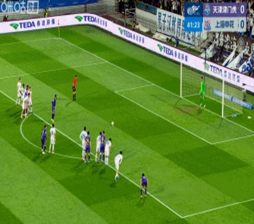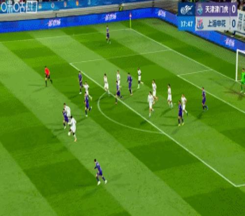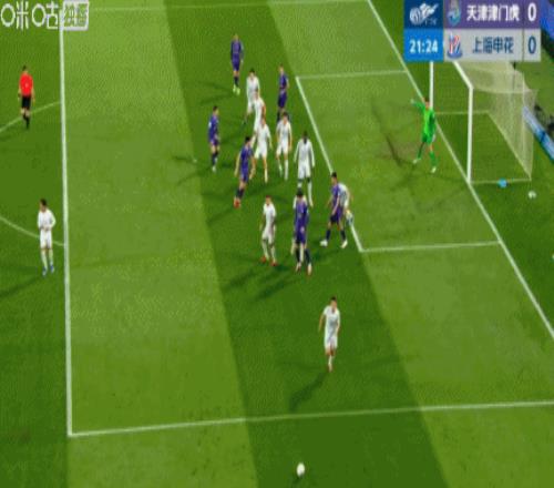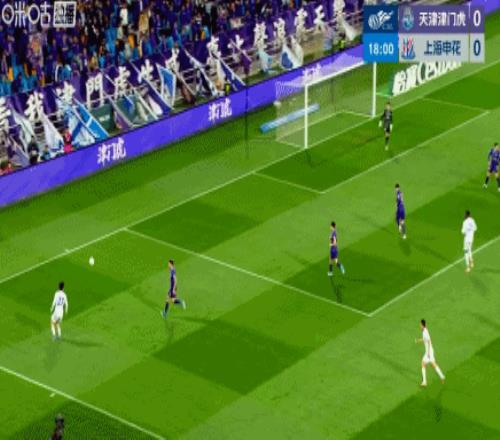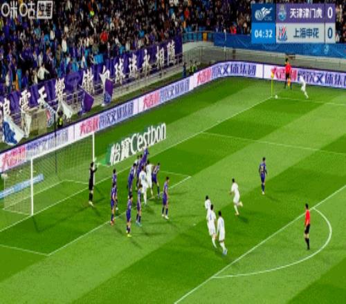 第45+4分鐘,朱辰杰頭球經(jīng)格勞折射破門,申花1-1半場讀秒扳平津門虎!