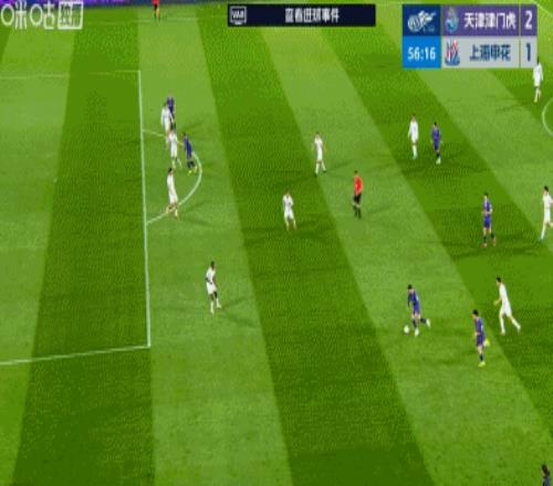 第56分鐘,哈達(dá)斯遠(yuǎn)射造薛慶浩撲救失誤,基萊斯門前笑納大禮破門,津門虎2-1!