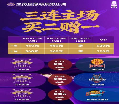 三場(chǎng)球票將于4月6日12:18同步發(fā)售