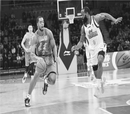 遼籃球員萊迪(左二)在比賽中發(fā)起進(jìn)攻。 本報(bào)記者 孫海濤 攝