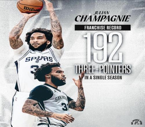 超越丹尼格林!尚帕涅創(chuàng)馬刺隊(duì)史單季三分球紀(jì)錄