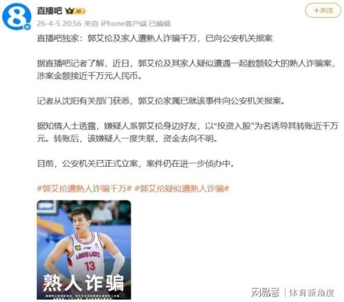 各位球迷朋友們快搬好小板凳!今天要爆料的可不是普通八卦——咱們的"亞洲第一控衛(wèi)"郭艾倫,居然被熟人用"親情殺"騙走千萬巨款!這劇情比他過人突破還讓人猝不及防!