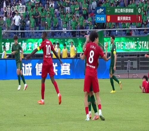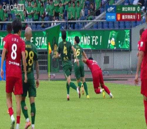 第一次發(fā)生在第75分鐘,李鎮(zhèn)全貼身防守米特里策時被薅了一把頭發(fā),后者痛苦倒地,裁判看到后沒有判罰,示意比賽繼續(xù)。半分鐘后浙江傳中出界出現(xiàn)死球,這時主裁鳴哨,隊(duì)醫(yī)進(jìn)場治療,期間VAR也沒有介入。第77分鐘,比賽恢復(fù)進(jìn)行,重慶銅梁龍擲界外球。