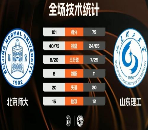 末節(jié)決戰(zhàn),雙方圍繞著20分左右分差展開拉鋸戰(zhàn),王虹里突外投連續(xù)得分不放棄,但北京師大多點(diǎn)開花總能給出回應(yīng),牢牢掌握住比賽主動(dòng)權(quán)。最終北京師大101-79戰(zhàn)勝山東理工。