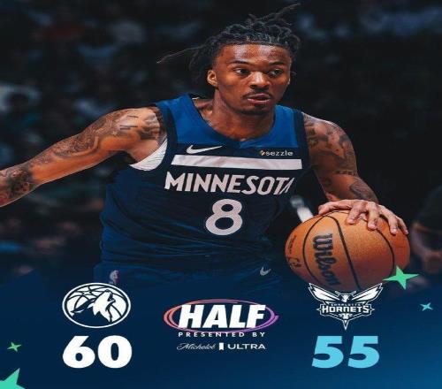 次節(jié)比賽,森林狼進攻火力大幅提升本場首次單節(jié)得分35+,且限制黃蜂連續(xù)兩節(jié)單節(jié)不足30分。森林狼追到差3分,黃蜂連得4分,森林狼內(nèi)外開花一波11-0攻勢反超4分。雙方接連沖擊內(nèi)線纏斗至43-43,森林狼連得4分取得領(lǐng)先,黃蜂反撲追分,森林狼內(nèi)外開花繼續(xù)保持領(lǐng)先。黃蜂單節(jié)26-39輸?shù)?3分,上半場結(jié)束黃蜂55-60被森林狼反超。前兩節(jié)比賽,森林狼三分21中10,蘭德爾14+4+2與海蘭德4記三分15分;黃蜂三分23中7,三球17分與布里奇斯12分。