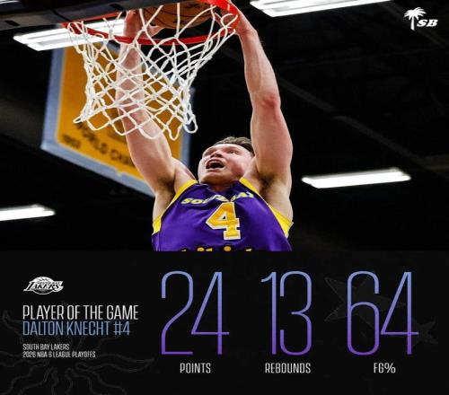 這場比賽不簡單,是G聯(lián)賽季后賽半決賽,南灣湖人由此成功晉級西決(目前已經(jīng)在西決被斯托克頓國王淘汰出局)——發(fā)展聯(lián)盟的季后賽規(guī)則不同于NBA,首輪、半決賽、分區(qū)決賽只打1場比賽,總決賽為三局兩勝制。