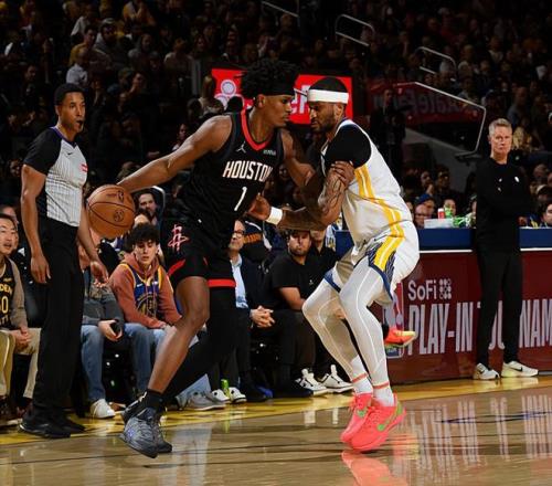 本場比賽中,火箭的先發(fā)后場新星阿門-湯普森(Amen Thompson)又一次將自己在攻防兩端的能力都發(fā)揮了出來。阿門全場出場39分29秒,投籃11中8,罰球4中2,得到了18分3籃板7助攻1搶斷的數(shù)據(jù),還有2次失誤和2次犯規(guī),正負(fù)值為+2。阿門在進(jìn)攻端不斷通過沖擊對手內(nèi)線制造威脅,他將自己在運動能力方面的優(yōu)勢發(fā)揮到了極致,他也是在對手內(nèi)線制造了不小的威脅并且得到了不少的分?jǐn)?shù)。除此之外,阿門也展現(xiàn)出了一定的傳球能力和組織能力,在進(jìn)攻端的功能非常全面。最關(guān)鍵的是,阿門在防守端的表現(xiàn)也是相當(dāng)不錯的,他在場上時也是能夠?qū)λ沟俜?庫里(Stephen Curry)進(jìn)行有效地限制的。阿門在本場比賽中算是發(fā)揮出了自己在攻防兩端的特點,這也為球隊的勝利做出了不小的貢獻(xiàn)。