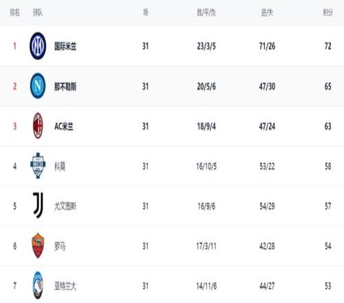 這場比賽讓爭四格局大亂。尤文圖斯贏球之后,總積分達到57分,排名第5,距離歐冠區(qū)只有1分。排名第4的是大黑馬科莫,科莫本輪比賽意外丟分,被烏迪內(nèi)斯0-0逼平,丟掉了關(guān)鍵2分,總積分是58分,只比尤文圖斯多1分。如果科莫接下來再次丟分,很可能會被尤文圖斯超越。事實上,還有另外兩支球隊在爭奪歐冠資格的隊伍中極具競爭力,那就是羅馬和亞特蘭大。羅馬54分排名第6,亞特蘭大53分排名第7。這幾支球隊的差距都不大,最多差5分。