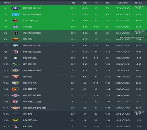 隨著AC米蘭01,尤文20,意甲最新排名出爐!國米7分領(lǐng)跑
