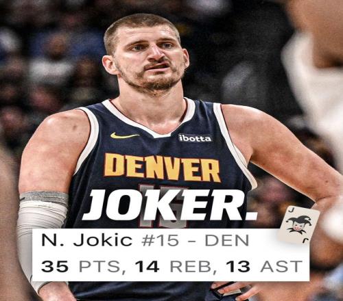 尼古拉-約基奇鏖戰(zhàn)43分鐘,31中15,三分5中1,罰球4中4,拿到35分14籃板13助攻5搶斷2蓋帽,命中率48.4%,三分命中率20%,這場比賽約基奇又創(chuàng)造多項紀(jì)錄。