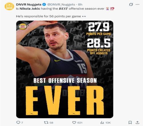約基奇又創(chuàng)7紀(jì)錄!場均造56.4分歷史頂尖美媒認(rèn)證依舊聯(lián)盟一哥