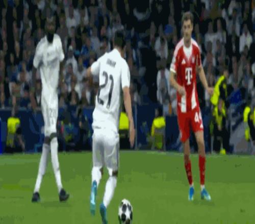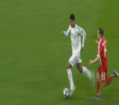 第41分鐘,格納布里直塞,迪亞斯前插推射破門,拜仁1-0皇馬
