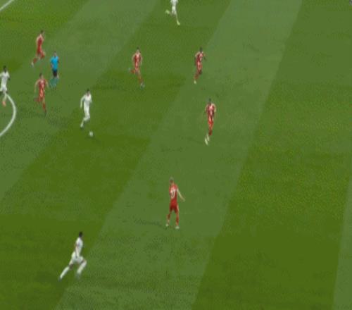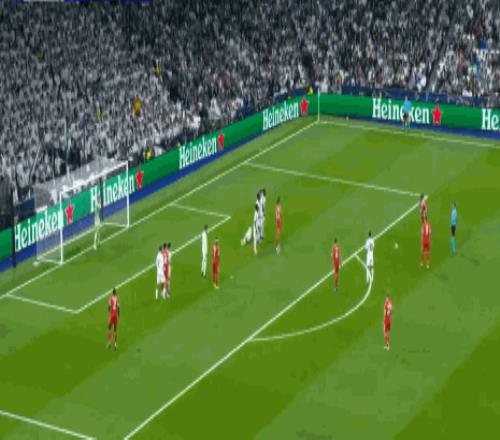 第46分鐘,下半場開場不到30秒,凱恩遠射破門,拜仁2-0皇馬