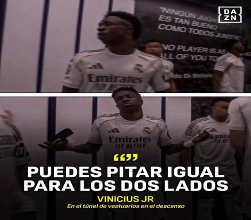 據(jù)悉,維尼修斯被攝像機捕捉到在中場休息的球員通道時向裁判抱怨:“你應(yīng)該對兩支球隊進行公正吹罰?!?/p>