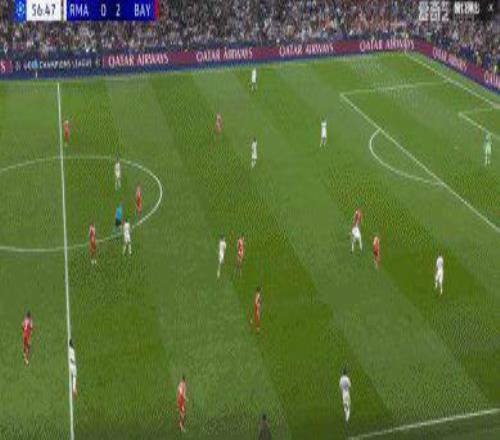 9’基米希任意球傳中,凱恩敲到門前,于帕梅卡諾面對空門踢跐。