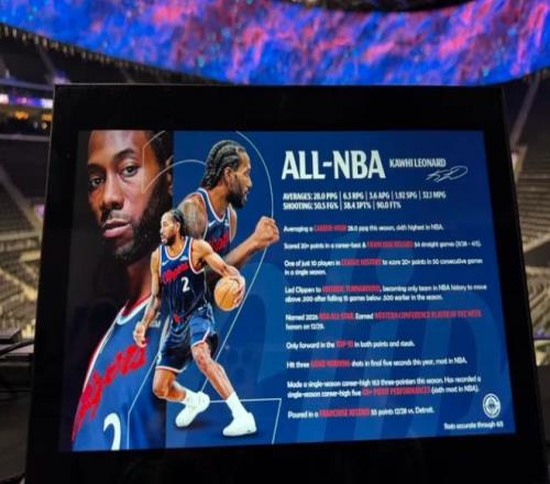 這場比賽快船主場的每一個座位上都貼著科懷-倫納德生涯的履歷,開場小卡的表現也的確炸裂,他帶隊打出了一波17-0的攻防浪潮,他此前已經連續(xù)54場比賽拿到20+這場比賽完成連續(xù)55場完全沒有問題。