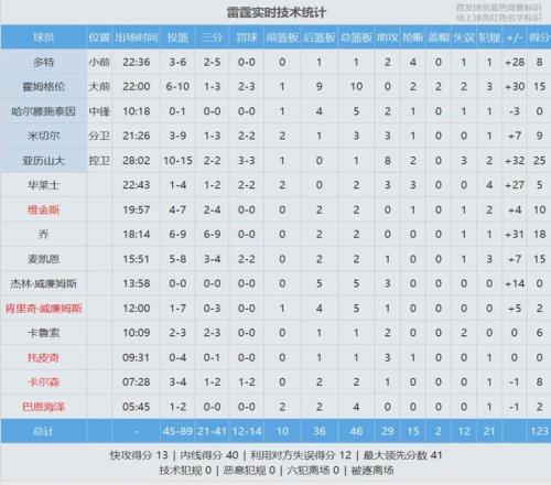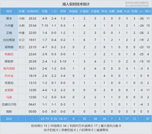 湖人繼續(xù)排名西部第四,落后掘金1個勝場。最后看看數(shù)據(jù),說說你的感受: