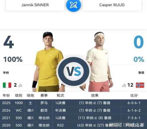 盡管職業(yè)生涯至今魯?shù)滤膽?zhàn)全負(fù)于辛納,其中去年羅馬大師賽1/4決賽,更是兩盤僅得一局,以0:6 1:6的懸殊比分慘負(fù)。但是魯?shù)录t土底蘊(yùn)深厚,紅土戰(zhàn)法諳熟于心,辛納要想再次過關(guān),并非易事。