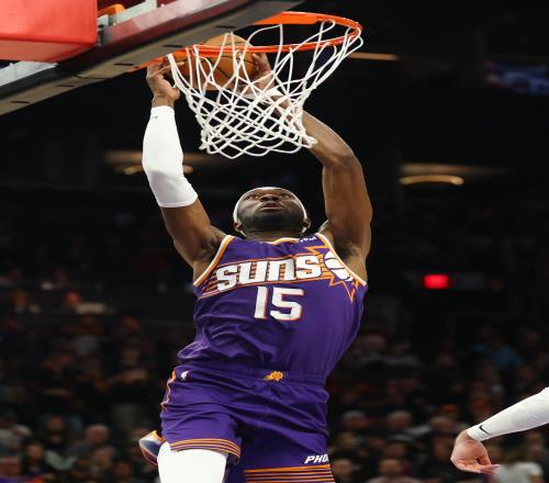 太陽(yáng)內(nèi)線馬克·威廉姆斯在上半場(chǎng)打得非常強(qiáng)硬,進(jìn)攻端終結(jié)高效也能制造殺傷,防守也是多次搶斷。