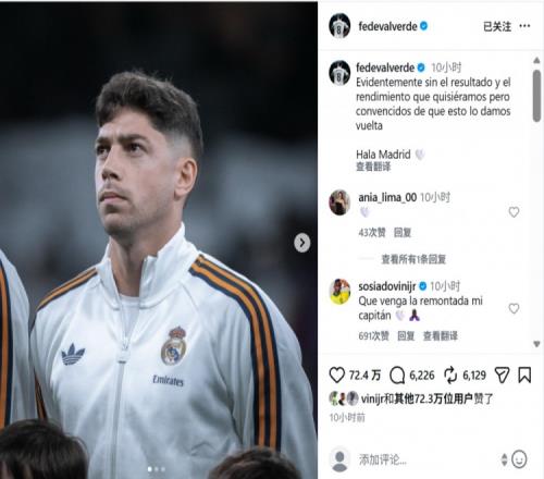 本場比賽巴爾韋德首發(fā)出戰(zhàn),賽后他也在個人社媒發(fā)文鼓勵球隊寫道:“顯然未能取得我們所期望的成績與表現(xiàn),但我們堅信定能扭轉局面。Hala Madrid