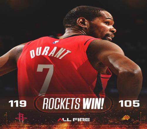 賽后火箭官方曬出本場贏球海報(bào),封面人物是杜蘭特。