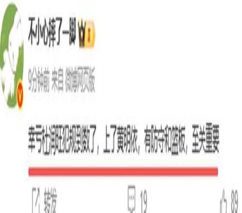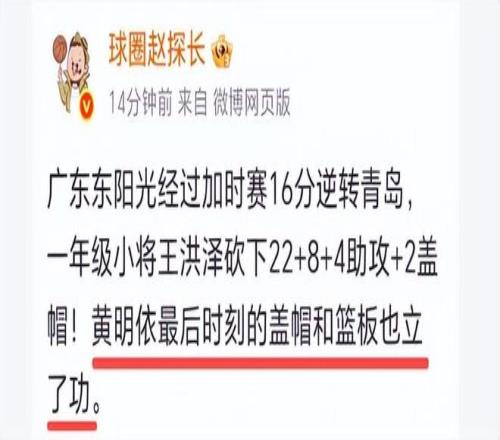 雖然黃明依得分不如隊友多,但是卻得到媒體人和球迷的怒贊,趙探長說,“廣東東陽光經(jīng)過加時賽16分逆轉(zhuǎn)青島,一年級小將王洪澤砍下22+8+4助攻+2蓋帽!黃明依最后時刻的蓋帽和籃板也立了功?!绷硪幻襟w人說“幸虧杜潤旺犯規(guī)到數(shù)了,上了黃明依,有防守和籃板,至關(guān)重要”,球迷夸:“黃明依最后時刻的蓋帽和籃板立下了汗馬功勞”,“黃明依不錯,可以防守,可以搶板,可以得分,不比杜鋒的愛醬18/25防守好嗎?”球迷說得很對,杜鋒瞧不起的隊員,偏偏是他拯救了杜鋒。你說神奇不?