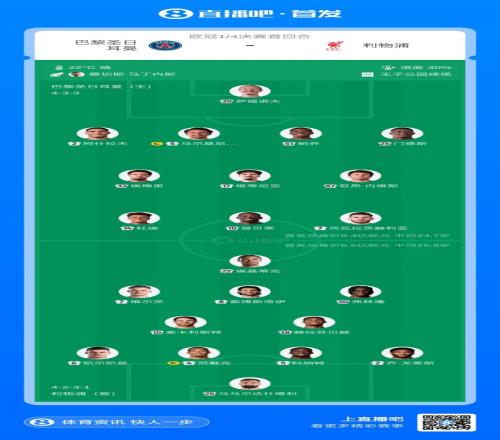 巴黎vs利物浦首發(fā):登貝萊、?;倏讼劝l(fā),維爾茨出戰(zhàn)薩拉赫替補