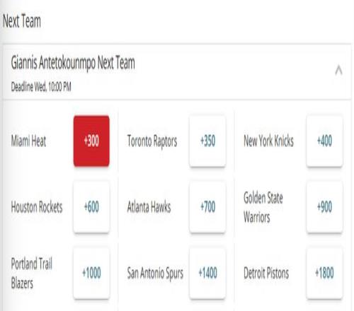 字母哥最新下家賠率:熱火領(lǐng)跑