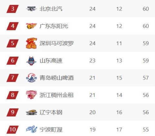 拿下了這場(chǎng)慘烈的犯規(guī)大戰(zhàn)后,廣東隊(duì)目前在積分榜的排名形勢(shì)也逐漸變得樂(lè)觀起來(lái)了,雖然競(jìng)爭(zhēng)對(duì)手北京本輪以103-94擊敗廣州龍獅,但得益于另一個(gè)競(jìng)爭(zhēng)對(duì)手山東本輪以97-103輸給了廣廈,如此一來(lái),廣東隊(duì)的排名也再度領(lǐng)先山東1分,重新來(lái)到第4。