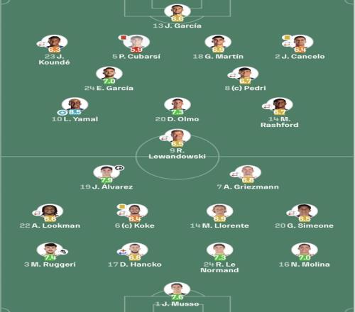 就此比賽走向了西蒙尼控制,巴薩雖然很想扳回一分,可是眾志成城下馬競(jìng)沒(méi)給機(jī)會(huì)。亞馬爾及坎塞洛們幾乎是把邊路突出了火星,奈何,馬競(jìng)防守實(shí)在是太好了,就此90分鐘,馬競(jìng)2-0勝的。