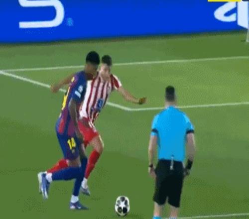 開場后巴薩攻勢兇猛。第4分鐘,亞馬爾送出傳球,拉什福德禁區(qū)內(nèi)射門被馬競門將穆索倒地?fù)醭觥?/p>