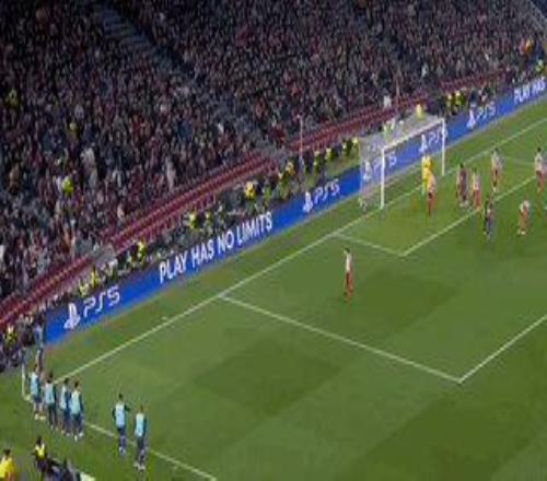 第45分鐘,正是利用這次任意球機會,阿爾瓦雷斯主罰打入右上死角,馬競1比0領先并多打一人。