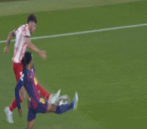 然而,比賽第42分鐘迎來徹底轉(zhuǎn)折,庫巴西在禁區(qū)前沿放倒單刀突進(jìn)的朱利亞諾-西蒙尼,主裁判經(jīng)VAR復(fù)核后直接紅牌罰下,巴薩只能以10人應(yīng)戰(zhàn)!