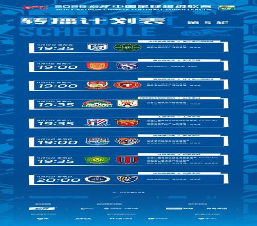 中超第5輪轉(zhuǎn)播計(jì)劃:CCTV16轉(zhuǎn)播上海德比,CCTV5+轉(zhuǎn)播國安vs蓉城