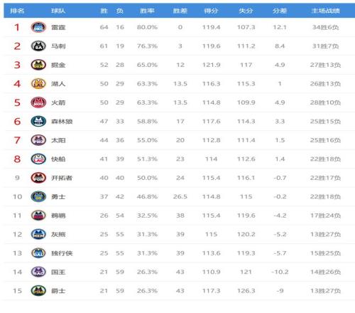 掘金贏球后10連勝,戰(zhàn)績(jī)52勝28負(fù),排名西部第三,領(lǐng)先身后的湖人、火箭1.5個(gè)勝場(chǎng)?;倚茌斍蚝?連敗,戰(zhàn)績(jī)25勝55負(fù),排名西部第12。