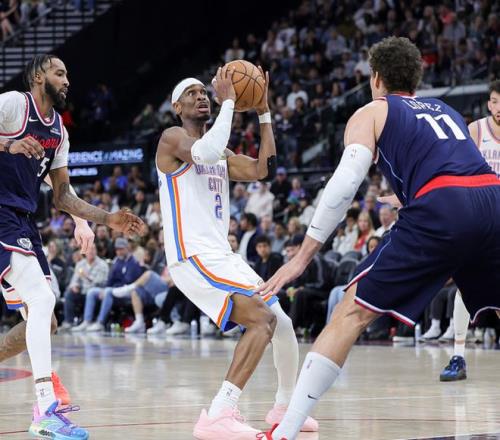 63勝16負(fù)的雷霆客場(chǎng)挑戰(zhàn)41勝38負(fù)的快船,兩隊(duì)都是背靠背作戰(zhàn),雷霆方面主力俱在,快船方面加蘭、比爾、尼德豪澤、杰克遜缺陣,雷霆優(yōu)勢(shì)很大,全場(chǎng)壓制快船,一度領(lǐng)先25分,最終雷霆128-110大勝快船。亞歷山大17中9(三分6中2)得到20分1板11助,切特13中10(三分4中3)得到30分14板5助2斷4帽、以賽亞喬9中6(三分7中4)得到21分2板2助、杰倫12中7得到18分6板6助2斷??齑矫?zhèn)惣{德18中8(三分5中2)得到20分8板3助,桑德斯8中5(三分4中3)得到17分2板1助2斷、大洛12中6(三分5中3)得到16分6板3助。