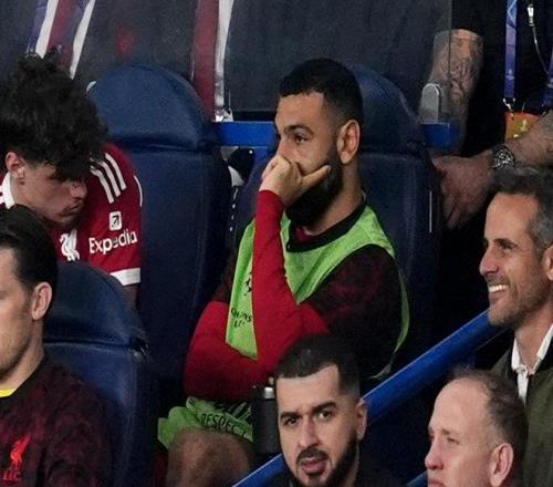 歐冠1/4決賽首回合,利物浦0-2輸巴黎。薩拉赫全場坐板凳,連熱身都沒怎么跑。