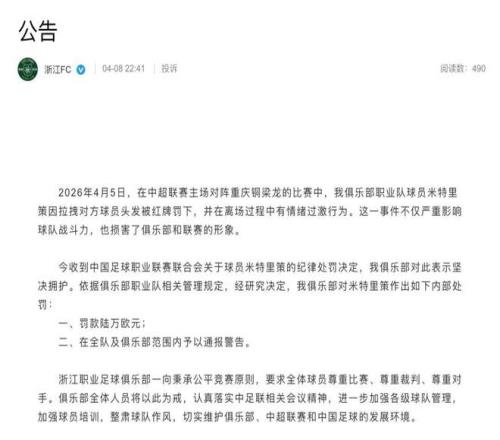 浙江隊補刀:俱樂部內部罰款6萬歐元(近50萬人民幣),全隊通報批評。
